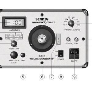 Can be used to calibrate vibration accelerometer, velocity and proximity transducer and also a vibration measuring instruments. Standard sine signals at frequency 10, 20, 40, 80, 160, 320, 640 and 1280 Hz can be generated from the calibrator. The amplitude of the, acceleration, velocity and displacement, can be defined through potentiometers and shown on digital displays. Either horizontal or vertical vibration can be generated. GJX-3 combines sine signal generator, power amplifier, standard transducer and a shaker in one and features a small volume, high accuracy and easy operation. It can be used either in laboratory or on site.